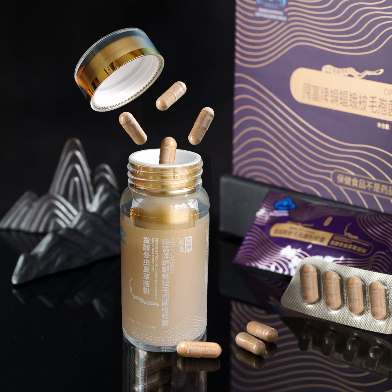 赐富牌蝙蝠蛾被毛孢菌粉胶囊(瓶装)~发酵冬虫夏草制品